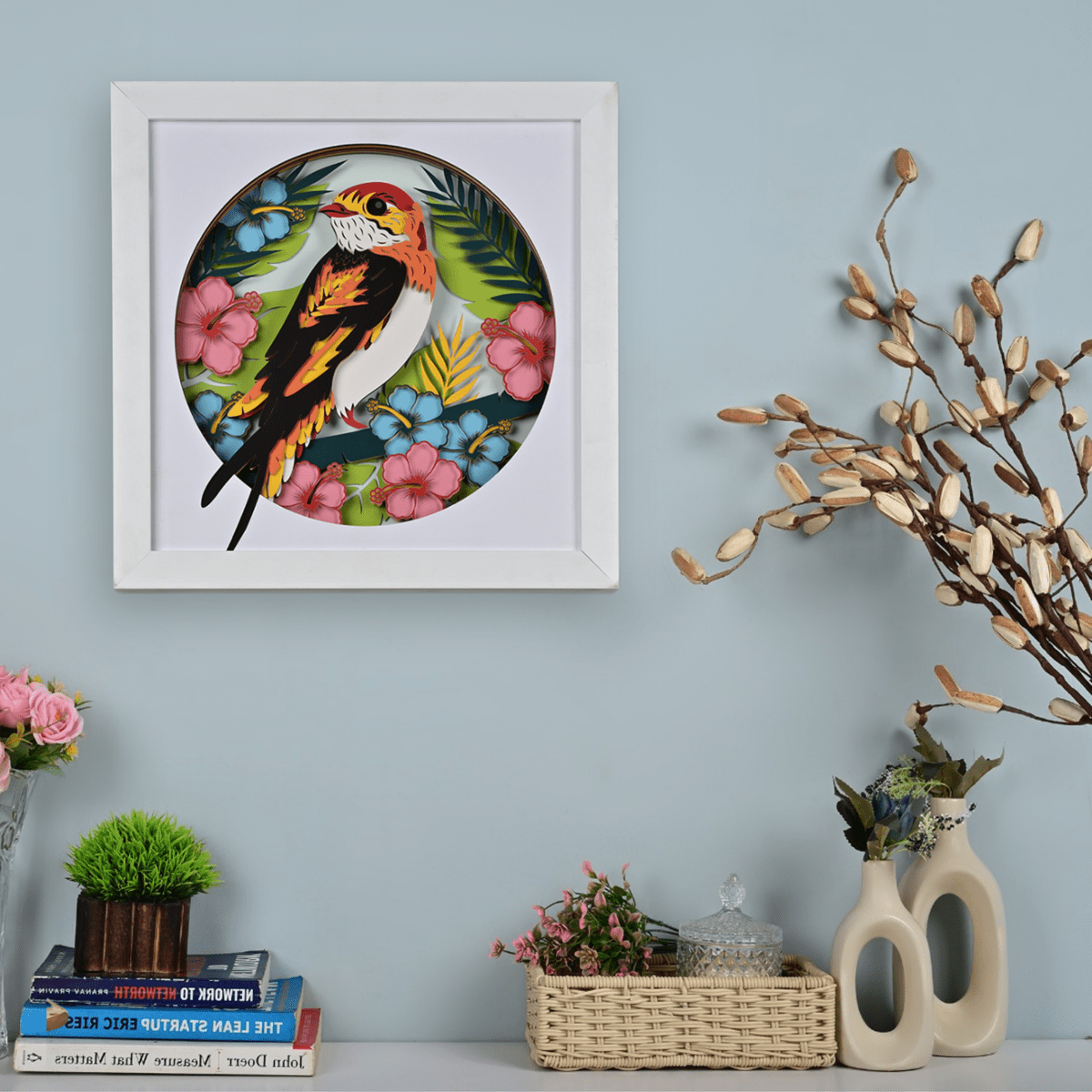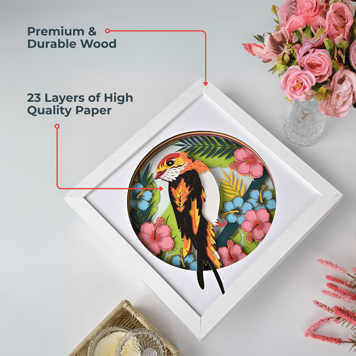 This design draws on traditional circular mandalas, built from three wooden layers for depth and spiritual energy. Subtle gold tones lift the design, offering a meditative focal point for your living space or yoga nook.